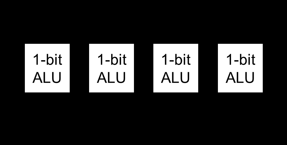 32-bit ALU module will be constructed using 1-bit ALU modules as shown below: